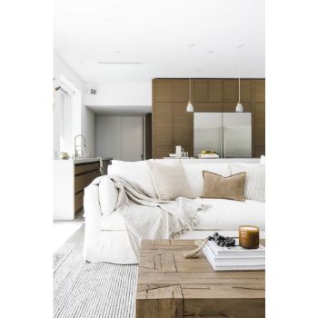 Comes with tight seat cushion only and 20" Throw Pillows with micro-flange. Fabrics NM, PS & RS pattern types will have seams down center of seat, in-back, outback, and skirt at back cushion break.